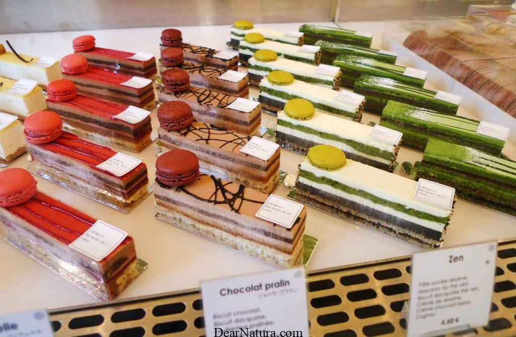 - Matcha Opéra: Bánh kem matcha với lớp bánh bông lan mềm mại, kết hợp với kem matcha béo ngậy và lớp sô cô la đen đậm đà.